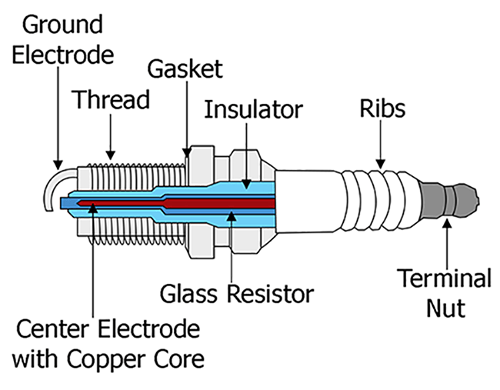 The spark plug is a seemingly simple device, but it’s an important part of your car’s ignition system. First and foremost, it creates an artificial lightning bolt inside the engine’s combustion chamber (high performance engines have 2 spark plugs in one combustion chamber). In order to produce a spark and “ignition” within the controlled chaos of the combustion chamber, it transmits a very high amount of electrical energy (voltage). Here, the voltage across the spark plug varies from 20,000 to 100,000.