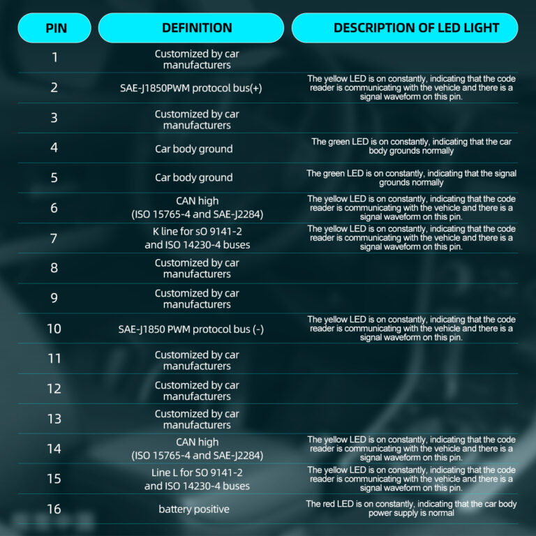- Each of the 16 pins can be easily accessed by the scan tool when communicating with the vehicle.