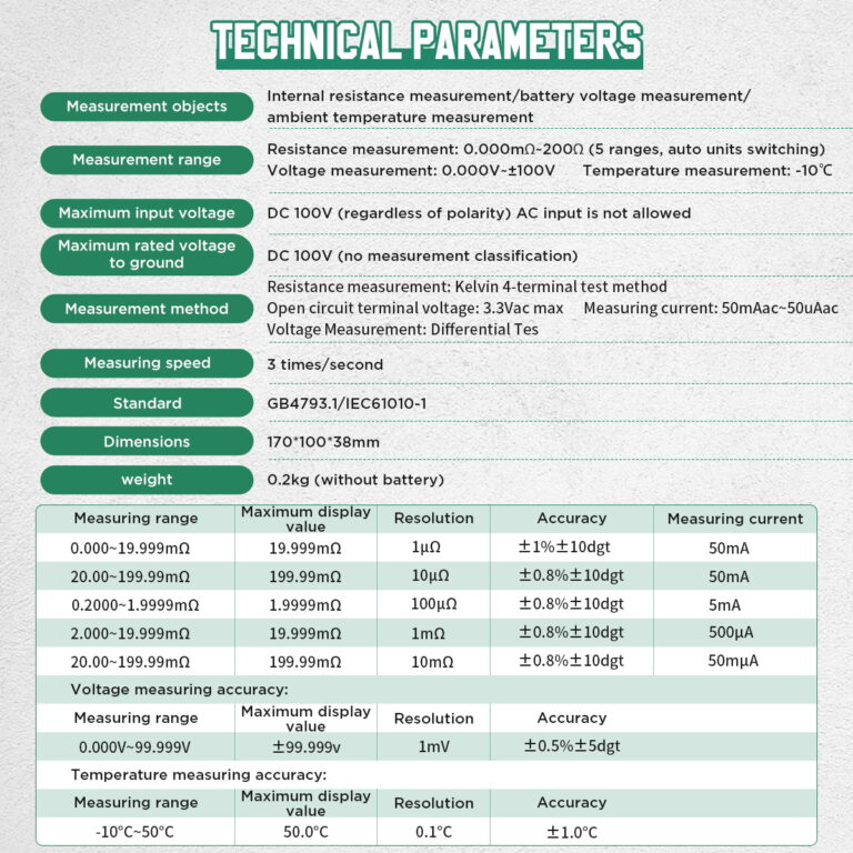 - The battery analyzer adopts Kelvin four-wire connection method, which avoids the influence of wire resistance and contact resistance, and ensures accurate and reliable test results.