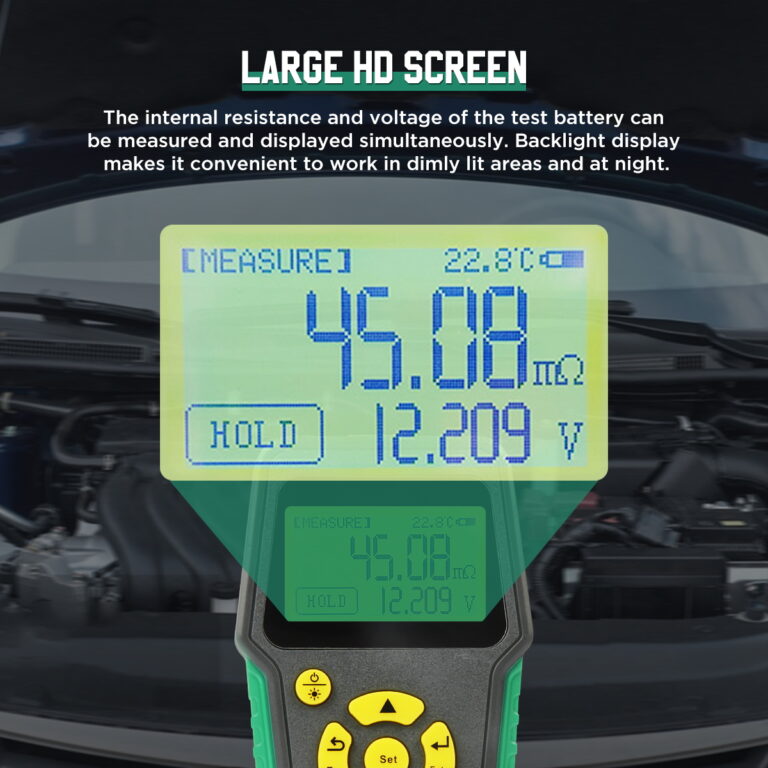 - Simultaneously measure and display readings of battery resistance and voltage.