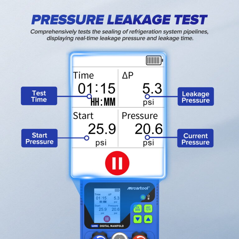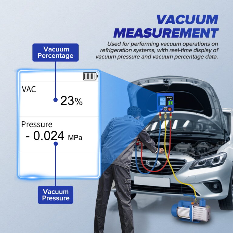 - Dual Pressure/Temperature Testing: Real-time display of vacuum and pressure values, with automatic multi-unit pressure conversion and Celsius/Fahrenheit automatic temperature conversion to meet different needs.