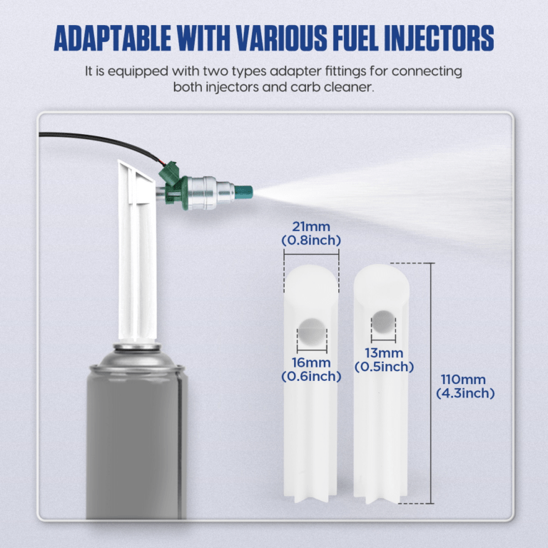 - Adaptable to Various Fuel Injectors: It comes with two types of adapter fittings, allowing it to connect both injectors and carburetor cleaners.