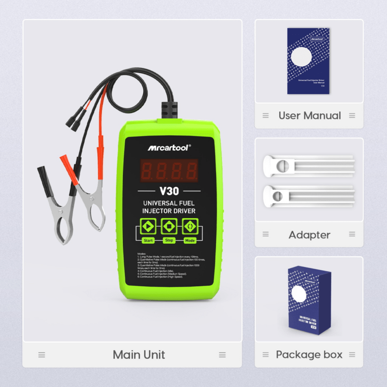 MRCARTOOL V30 is designed to test fuel injectors and identify potential issues such as clogs, leakage, or damage. It offers six testing modes, allowing users to select the most appropriate mode based on their specific needs. Additionally, it can be used in conjunction with a fuel injector tester machine for more comprehensive testing.