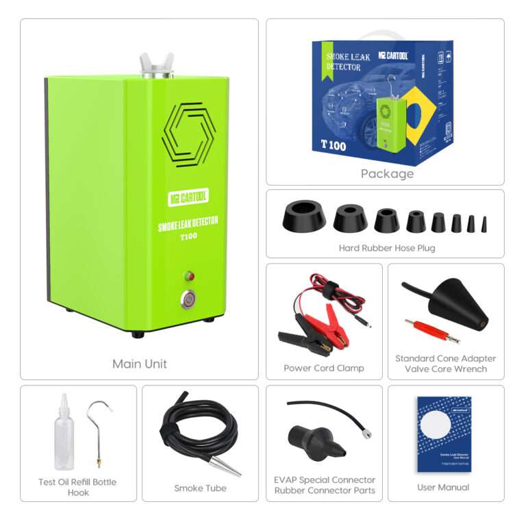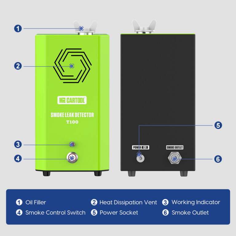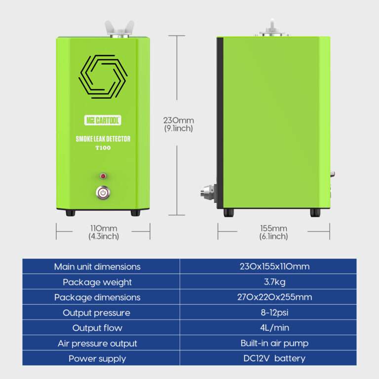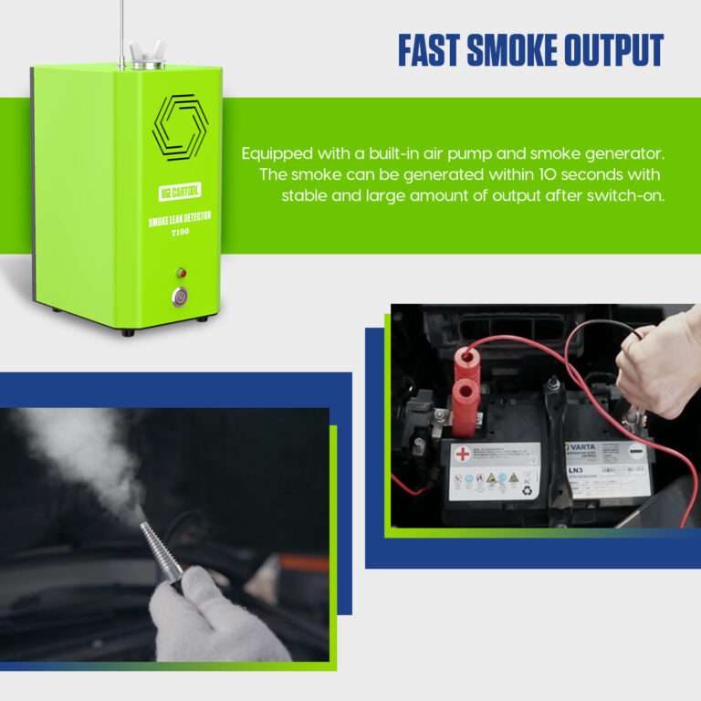 - Fast Smoke Output: T100 smoke test machine produce smoke within 10 seconds and maintain a stable, large amount of smoke output after switching on the device by heating Baby Oil. Dramatically reducing diagnostic time.