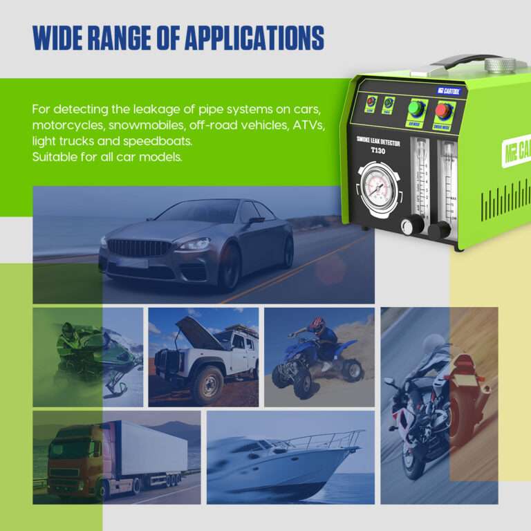 • Wide range of application: For detecting the leakage of pipe systems on cars, motorcycles, snowmobiles, off-road wehicles, ATVs, light truck and speedboats. Suitable for all car models.