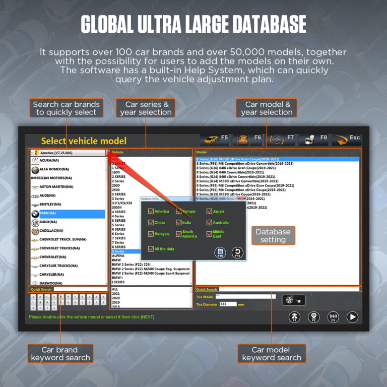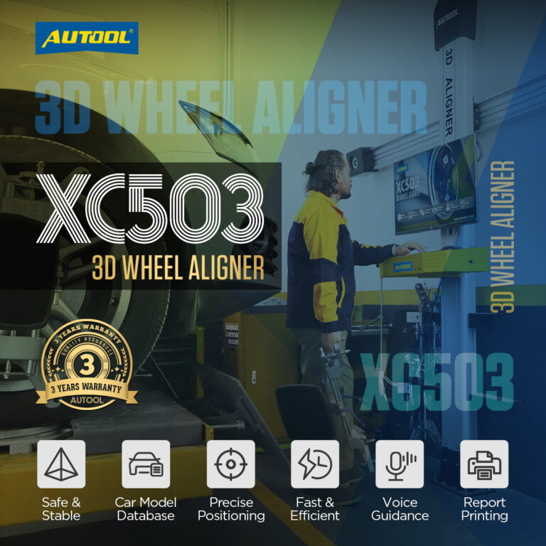 AUTOOL XC503 3D wheel alignment machine uses advanced 3D imaging and body-based measurement technology. Wheel Aligner provides real-time, high-precision detection of wheel alignment data. The device is accurate and stable. Users can operate it quickly and easily. It does not require station space and is not limited by the lifting platform. This flexibility meets the needs of various locations. It has strong database support with continuous updates.